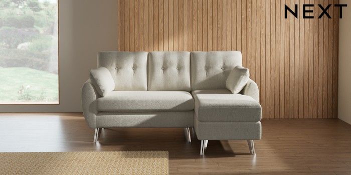 7.3.1 Buy Wilson Buttoned Back Small Sofa Chaise - Right Hand Chunky Texture Oyster Metal Tapered - Chrome from the Laura Ashley online shop Click here to use our website with more accessibility support, for example screen readers
