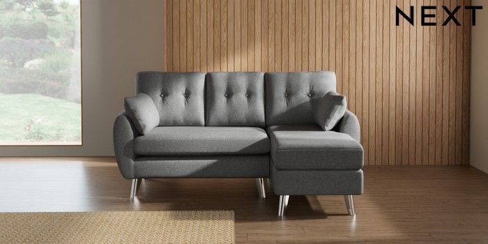 7.3.1 Buy Wilson Buttoned Back Small Sofa Chaise - Right Hand Chunky Weave Mid Grey Metal Tapered - Chrome from the Laura Ashley online shop Click here to use our website with more accessibility support, for example screen readers