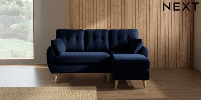 7.3.1 Buy Wilson Buttoned Back Small Sofa Chaise - Right Hand Luxe Chenille Navy Blue Retro Tapered - Light from the Laura Ashley online shop