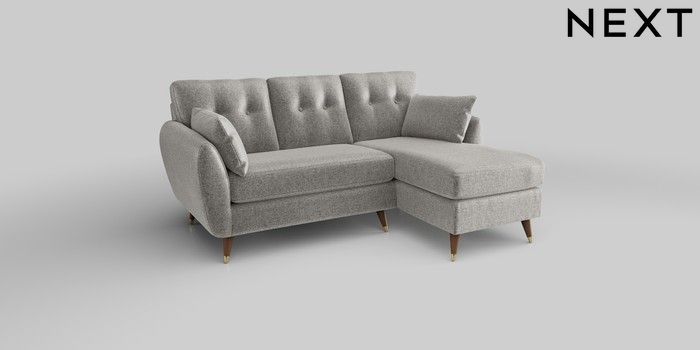 6.12.1 Buy Wilson Buttoned Back Small Sofa Chaise - Right Hand Plush Chenille Light Grey Low Retro Tapered Metal Cap - Mid from the Laura Ashley online shop Click here to use our website with more accessibility support, for example screen readers