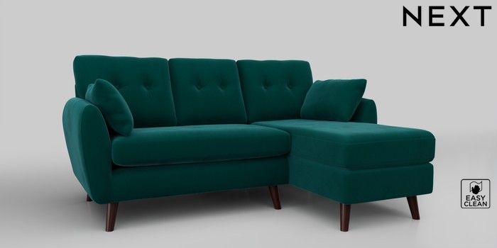 6.12.1 Buy Wilson Buttoned Back Small Sofa Chaise - Right Hand Plush Velvet Easy Clean Juniper Green Retro Tapered - Dark Brown from the Laura Ashley online shop Click here to use our website with more accessibility support, for example screen readers