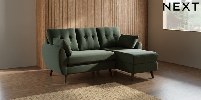 7.2.10 Buy Wilson Buttoned Back Small Sofa Chaise - Right Hand Relaxed Linen Look Dark Green Retro Tapered - Mid from the Laura Ashley online shop Click here to use our website with more accessibility support, for example screen readers