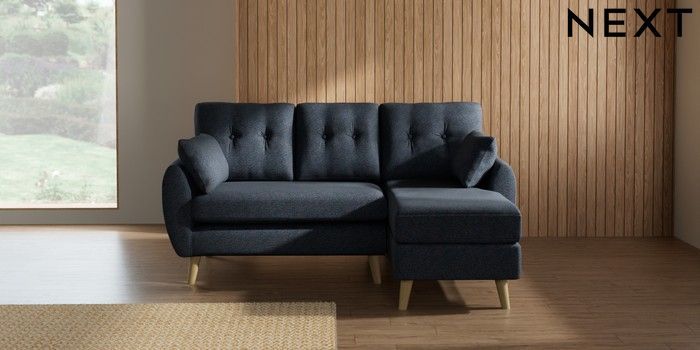 7.3.1 Buy Wilson Buttoned Back Small Sofa Chaise - Right Hand Tweedy Chenille Navy Blue Retro Tapered - Light from the Laura Ashley online shop Click here to use our website with more accessibility support, for example screen readers