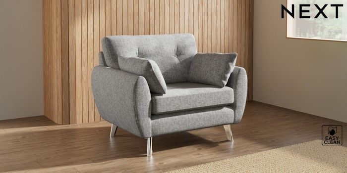 7.3.1 Buy Wilson Buttoned Back Snuggle Chunky Boucle Easy Clean Light Grey Metal Tapered - Chrome from the Laura Ashley online shop