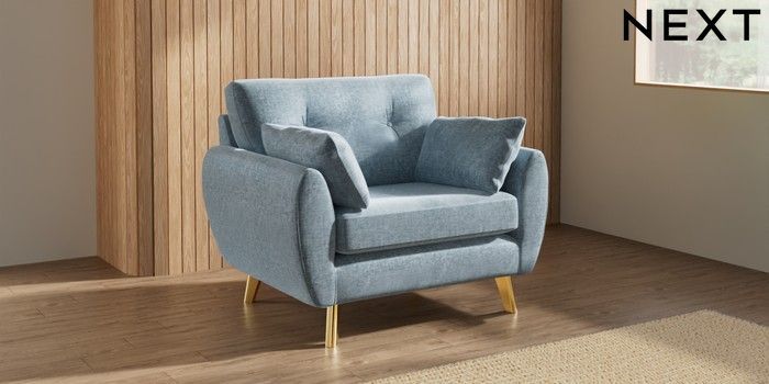 7.3.1 Buy Wilson Buttoned Back Snuggle Plush Chenille Light Blue Metal Tapered - Gold from the Laura Ashley online shop