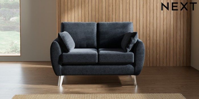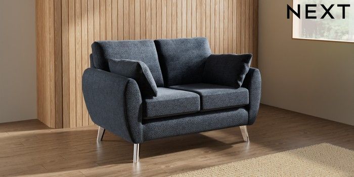 7.3.1 Buy Wilson 2 Seater Small Sofa Boucle Chenille Dark Slate Blue Metal Tapered - Chrome from the Laura Ashley online shop