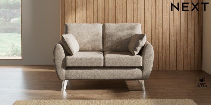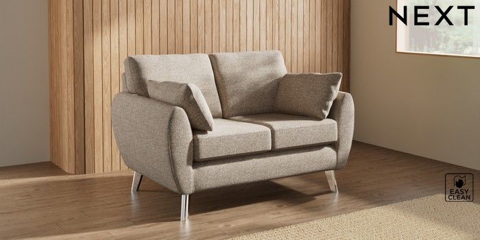 7.3.1 Buy Wilson 2 Seater Small Sofa Chunky Boucle Easy Clean Mid Natural Metal Tapered - Chrome from the Laura Ashley online shop