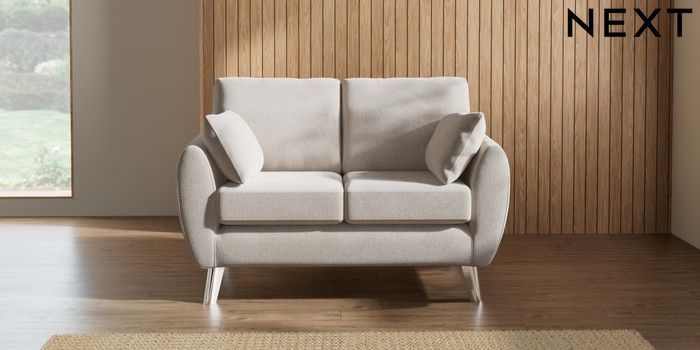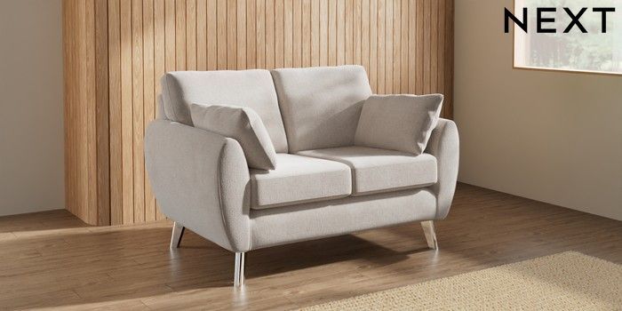 7.3.1 Buy Wilson 2 Seater Small Sofa Chunky Chenille Oyster Metal Tapered - Chrome from the Laura Ashley online shop