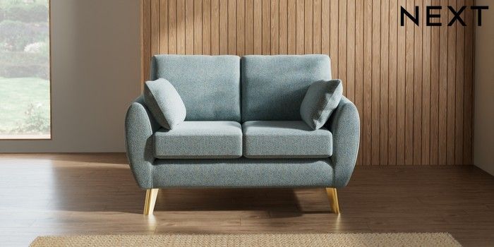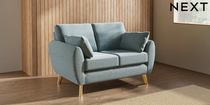 7.3.1 Buy Wilson 2 Seater Small Sofa Chunky Marl Mid Blue Metal Tapered - Gold from the Laura Ashley online shop