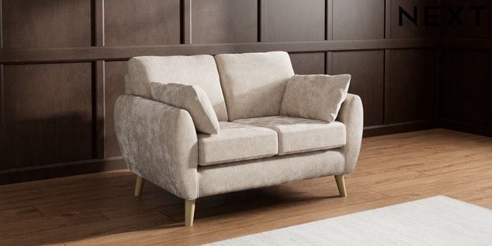 7.3.1 Buy Wilson 2 Seater Small Sofa Distressed Velour Mid Natural Retro Tapered - Light from the Laura Ashley online shop