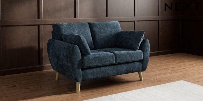 7.3.1 Buy Wilson 2 Seater Small Sofa Distressed Velour Midnight Blue Retro Tapered - Light from the Laura Ashley online shop