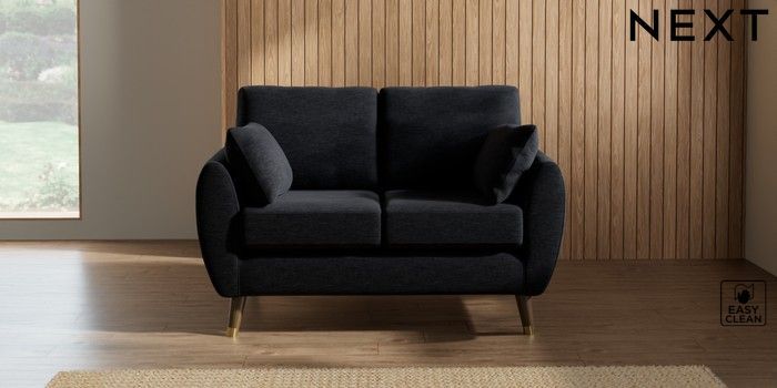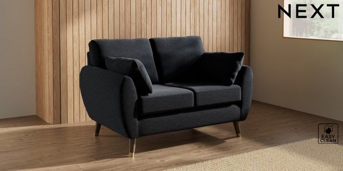 7.3.1 Buy Wilson 2 Seater Small Sofa Fine Chenille Easy Clean Black Low Retro Tapered Metal Cap - Mid from the Laura Ashley online shop