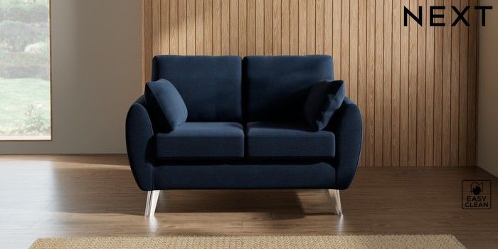 7.3.1 Buy Wilson 2 Seater Small Sofa Fine Chenille Easy Clean Dark Navy Blue Metal Tapered - Chrome from the Laura Ashley online shop