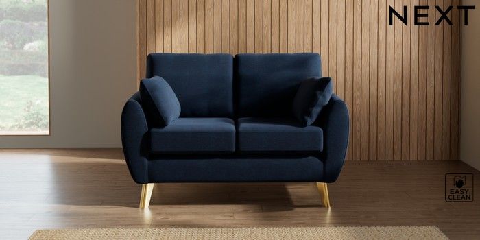 7.3.1 Buy Wilson 2 Seater Small Sofa Fine Chenille Easy Clean Dark Navy Blue Metal Tapered - Gold from the Laura Ashley online shop