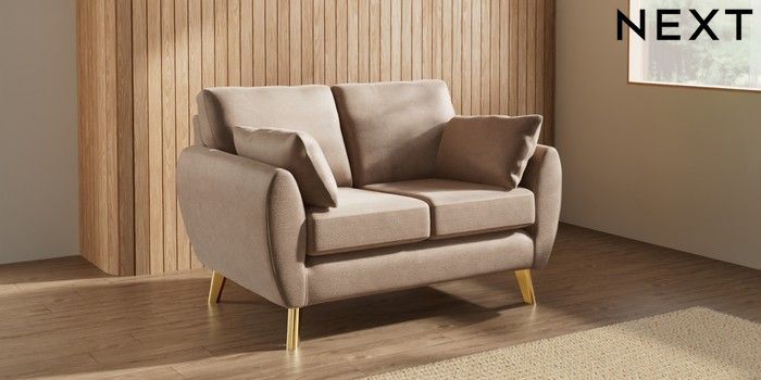 7.3.1 Buy Wilson 2 Seater Small Sofa Luxe Chenille Mid Natural Metal Tapered - Gold from the Laura Ashley online shop