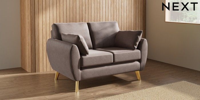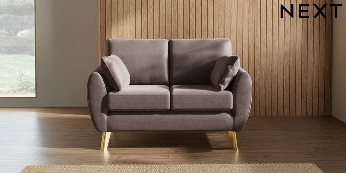 7.3.1 Buy Wilson 2 Seater Small Sofa Luxe Chenille Mink Brown Metal Tapered - Gold from the Laura Ashley online shop