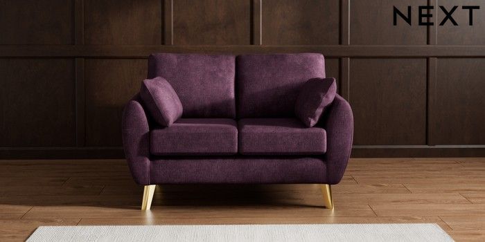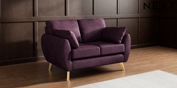 7.3.1 Buy Wilson 2 Seater Small Sofa Plush Chenille Dark Plum Purple Metal Tapered - Gold from the Laura Ashley online shop