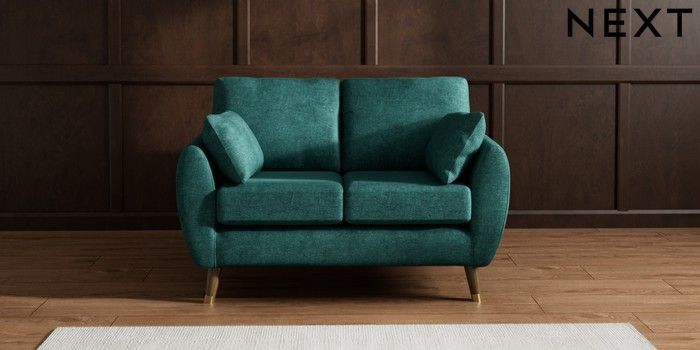 7.3.1 Buy Wilson 2 Seater Small Sofa Plush Chenille Dark Teal Green Low Retro Tapered Metal Cap - Mid from the Laura Ashley online shop