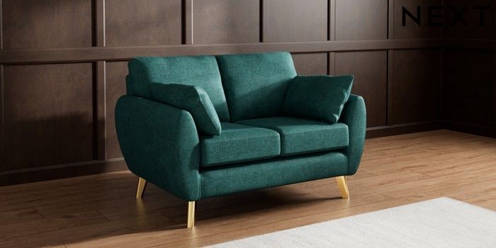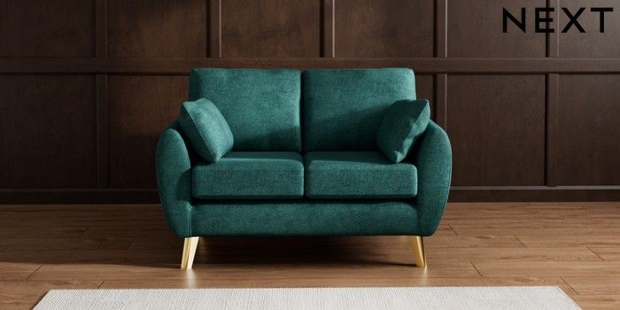 7.3.1 Buy Wilson 2 Seater Small Sofa Plush Chenille Dark Teal Green Metal Tapered - Gold from the Laura Ashley online shop