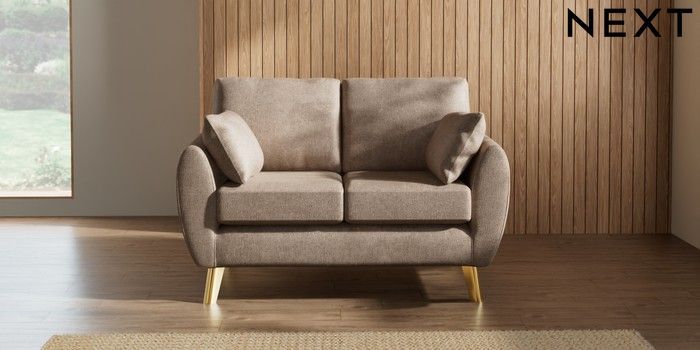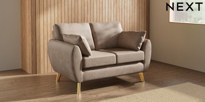 7.3.1 Buy Wilson 2 Seater Small Sofa Plush Chenille Mid Natural Metal Tapered - Gold from the Laura Ashley online shop