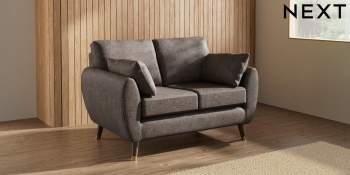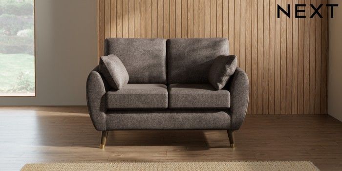 7.3.1 Buy Wilson 2 Seater Small Sofa Plush Chenille Mink Brown Low Retro Tapered Metal Cap - Mid from the Laura Ashley online shop