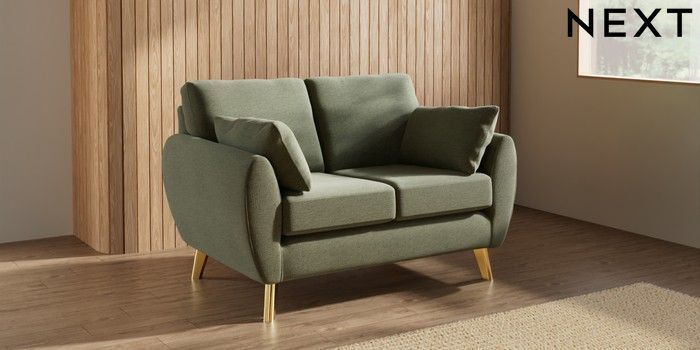 7.3.1 Buy Wilson 2 Seater Small Sofa Ripple Chenille Mid Moss Green Metal Tapered - Gold from the Laura Ashley online shop