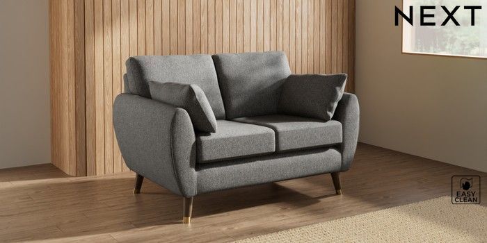 7.3.1 Buy Wilson 2 Seater Small Sofa Tweedy Blend Easy Clean Dark Grey Low Retro Tapered Metal Cap - Mid from the Laura Ashley online shop