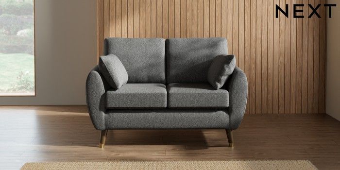 7.3.1 Buy Wilson 2 Seater Small Sofa Tweedy Chenille Dark Grey Low Retro Tapered Metal Cap - Mid from the Laura Ashley online shop