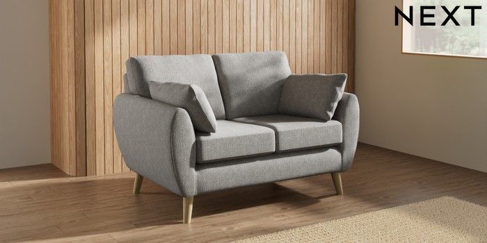 7.3.1 Buy Wilson 2 Seater Small Sofa Tweedy Chenille Mid Grey Retro Tapered - Light from the Laura Ashley online shop