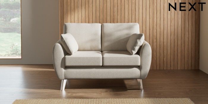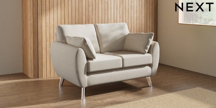 7.3.1 Buy Wilson 2 Seater Small Sofa Tweedy Chenille Oyster Metal Tapered - Chrome from the Laura Ashley online shop