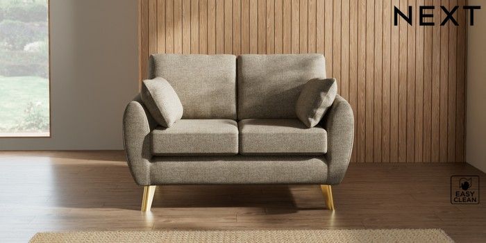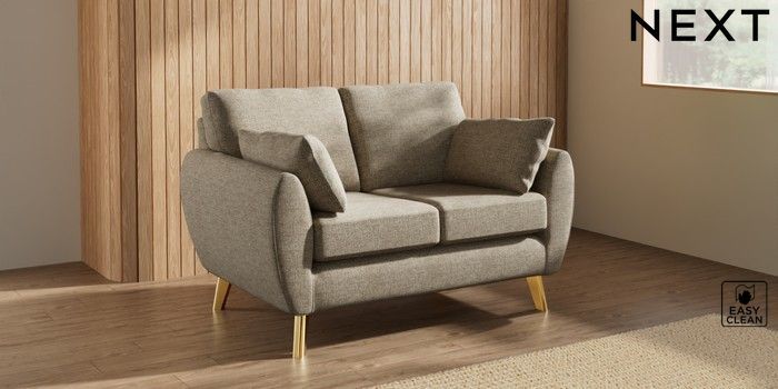 7.3.1 Buy Wilson 2 Seater Small Sofa Woven Chenille Easy Clean Mid Natural Metal Tapered - Gold from the Laura Ashley online shop
