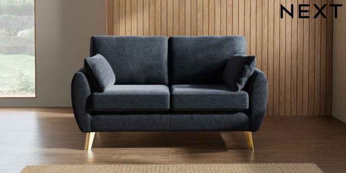 7.3.1 Buy Wilson 2 Seater Sofa Boucle Chenille Dark Slate Blue Metal Tapered - Gold from the Laura Ashley online shop