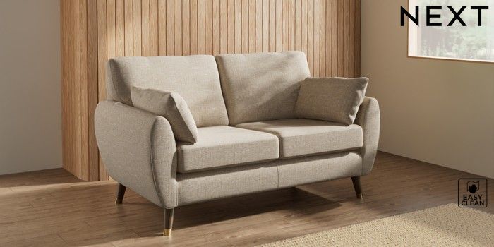 7.3.1 Buy Wilson 2 Seater Sofa Boucle Weave Easy Clean Dark Natural Low Retro Tapered Metal Cap - Mid from the Laura Ashley online shop