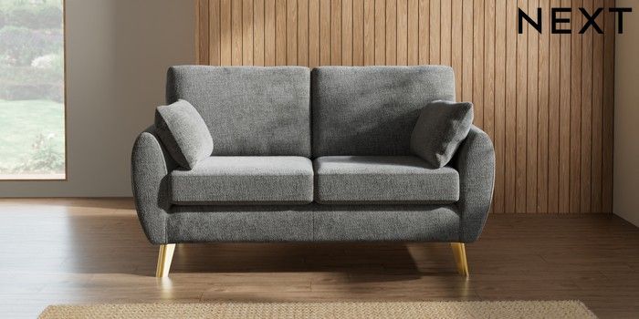 7.3.1 Buy Wilson 2 Seater Sofa Chunky Chenille Dark Grey Metal Tapered - Gold from the Laura Ashley online shop