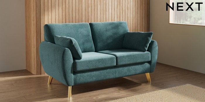 7.3.1 Buy Wilson 2 Seater Sofa Chunky Chenille Mid Teal Green Metal Tapered - Gold from the Laura Ashley online shop