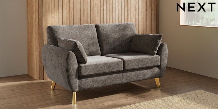 7.3.1 Buy Wilson 2 Seater Sofa Chunky Chenille Mink Brown Metal Tapered - Gold from the Laura Ashley online shop