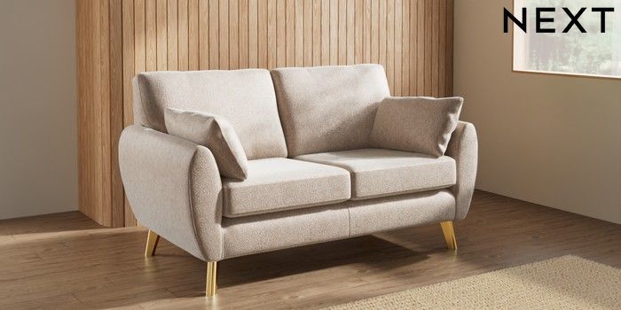 7.3.1 Buy Wilson 2 Seater Sofa Cotswold Chenille Light Natural Metal Tapered - Gold from the Laura Ashley online shop