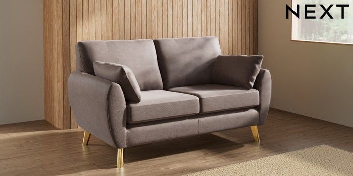 7.3.1 Buy Wilson 2 Seater Sofa Luxe Chenille Mink Brown Metal Tapered - Gold from the Laura Ashley online shop