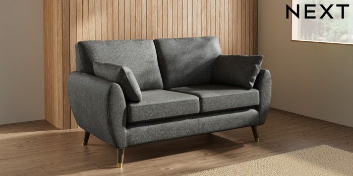 7.3.1 Buy Wilson 2 Seater Sofa Plush Chenille Dark Grey Low Retro Tapered Metal Cap - Mid from the Laura Ashley online shop