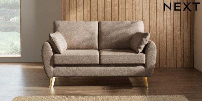 7.3.1 Buy Wilson 2 Seater Sofa Plush Chenille Mid Natural Metal Tapered - Gold from the Laura Ashley online shop