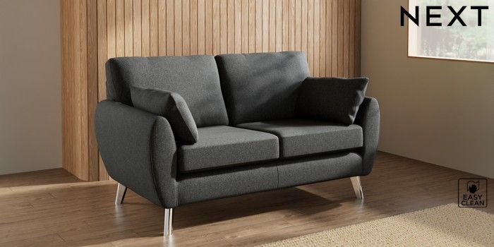 7.3.1 Buy Wilson 2 Seater Sofa Tweedy Blend Easy Clean Charcoal Grey Metal Tapered - Chrome from the Laura Ashley online shop
