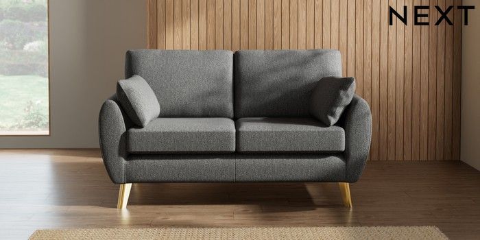 7.3.1 Buy Wilson 2 Seater Sofa Tweedy Chenille Dark Grey Metal Tapered - Gold from the Laura Ashley online shop