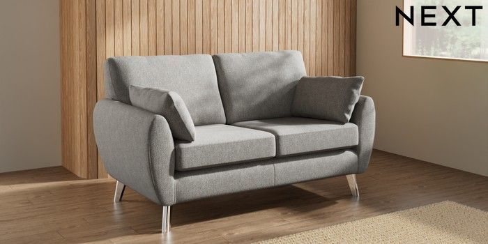 7.3.1 Buy Wilson 2 Seater Sofa Tweedy Chenille Mid Grey Metal Tapered - Chrome from the Laura Ashley online shop