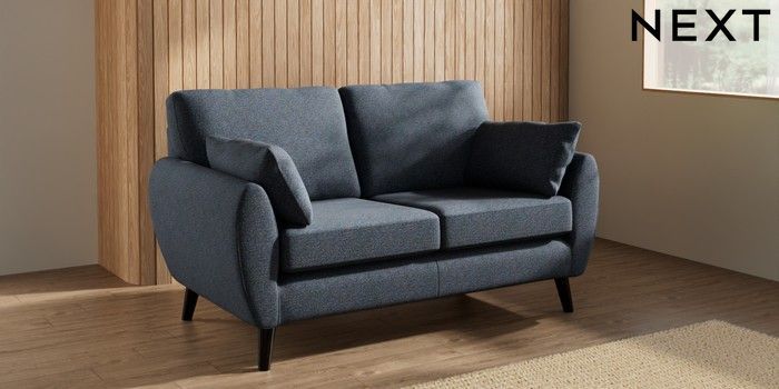 7.3.1 Buy Wilson 2 Seater Sofa Tweedy Chenille Navy Blue Retro Tapered - Dark from the Laura Ashley online shop