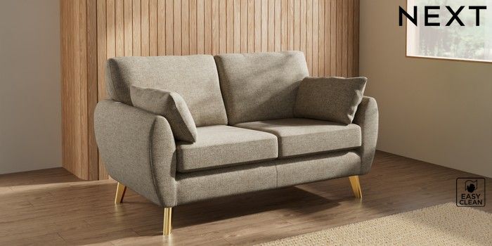 7.3.1 Buy Wilson 2 Seater Sofa Woven Chenille Easy Clean Mid Natural Metal Tapered - Gold from the Laura Ashley online shop