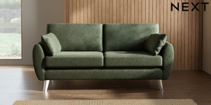 7.3.1 Buy Wilson 3 Seater Small Sofa Boucle Chenille Dark Moss Green Metal Tapered - Chrome from the Laura Ashley online shop