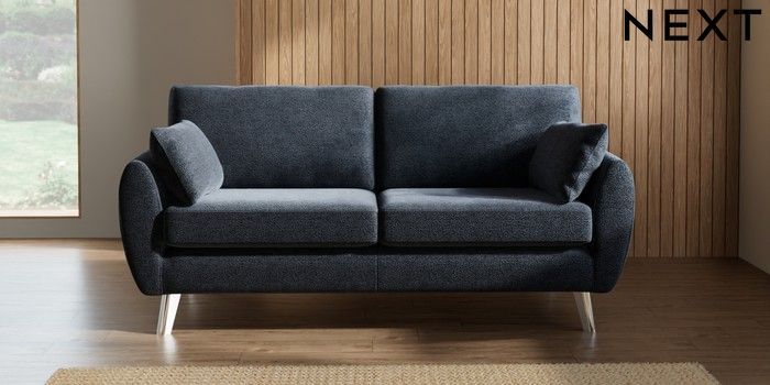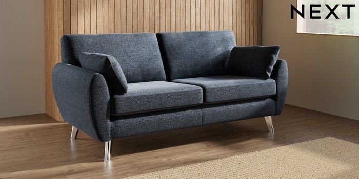 7.3.1 Buy Wilson 3 Seater Small Sofa Boucle Chenille Dark Slate Blue Metal Tapered - Chrome from the Laura Ashley online shop