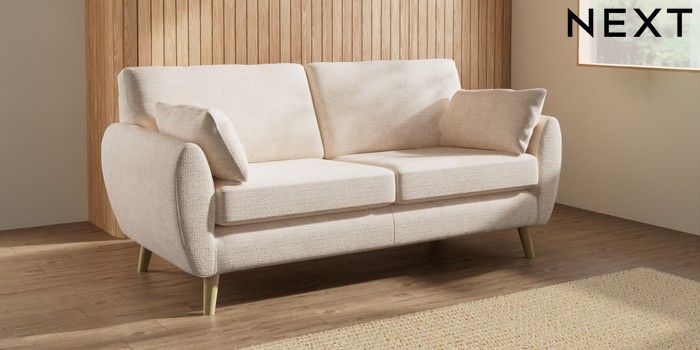 7.3.1 Buy Wilson 3 Seater Small Sofa Boucle Chenille Oyster Retro Tapered - Light from the Laura Ashley online shop