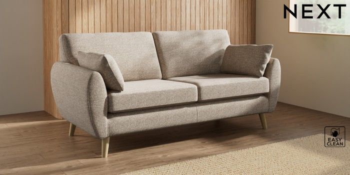 7.3.1 Buy Wilson 3 Seater Small Sofa Chunky Boucle Easy Clean Mid Natural Retro Tapered - Light from the Laura Ashley online shop