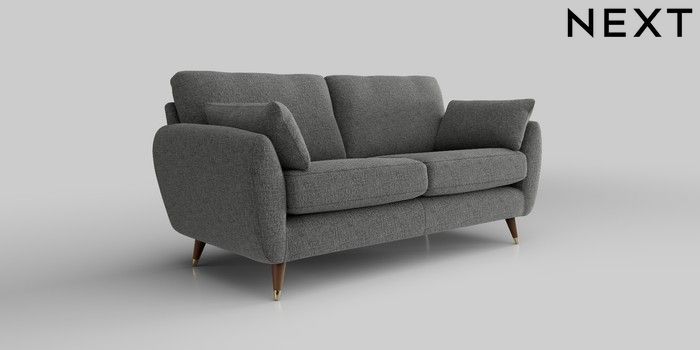 6.12.13 Buy Wilson 3 Seater Small Sofa Chunky Chenille Dark Grey Low Retro Tapered Metal Cap - Mid from the Laura Ashley online shop Click here to use our website with more accessibility support, for example screen readers